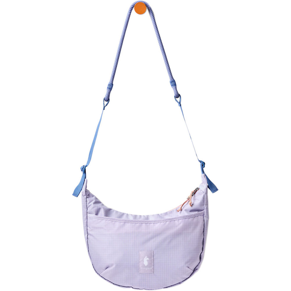 Egyedi, mászókötélből készült vállpánttal állítható, félhold alakú 8 literes válltáska. Főrekesze osztott az átláthatóság érdekében. 100%-ban újrahasznosított anyagokból készült.