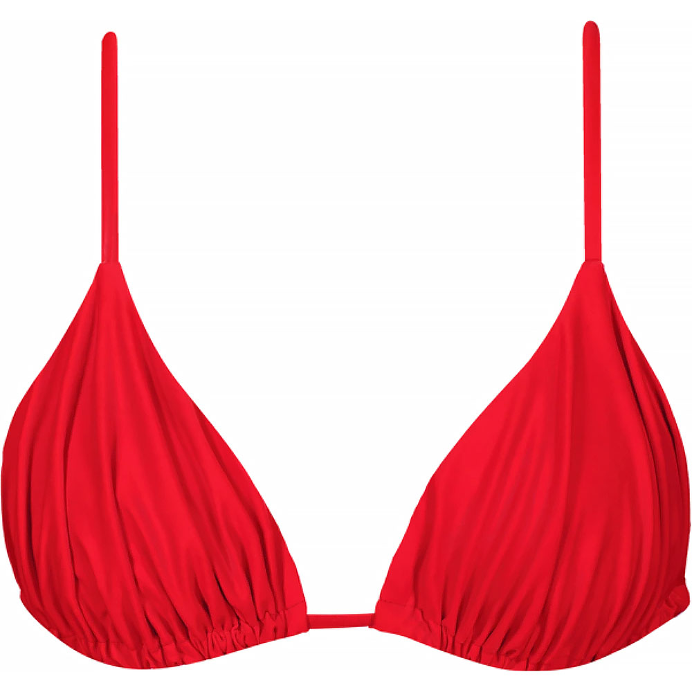 Háromszög fazonú női bikini felső párnázás nélküli kialakítással, kétrétegű szövetszerkezettel. Megkötős alsó pánttal és állítható vállpántokkal készült a kényelmes illeszkedés érdekében. Letisztultsága révén könnyedén kombinálható szinte bármilyen alsóval.
